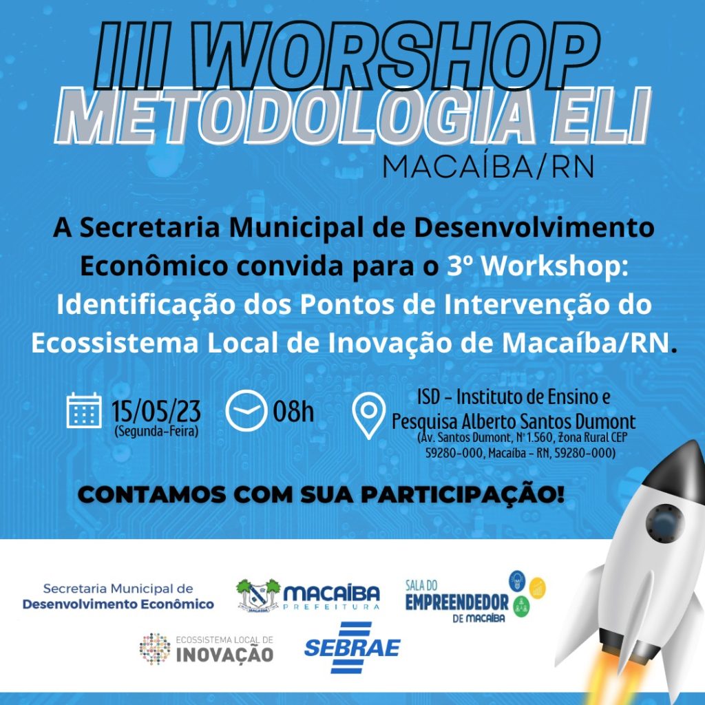 Após a realização dos primeiros workshops referentes à implementação do Ecossistema Local de Inovação (ELI) no município de Macaíba, e os devidos encaminhamentos já feitos. Será a vez de dar o próximo passo, que corresponde ao terceiro workshop, o qual ocorrerá na próxima segunda-feira (15) nas dependências do Instituto de Ensino e Pesquisa Albert Santos Dumont, a partir das 8h.